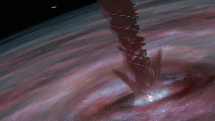 На самом деле черные дыры не поглощают абсолютно всю окружающую материю. Большая часть этого вещества улетает обратно в космос благодаря сильным магнитным полям, которые поднимают частицы из аккреционного диска черной дыры и ускоряют их до почти скорости света. Если черные дыры не поглощают всю материю, то как они становятся сверхмассивными? Авторы нового исследования, опубликованного в журнале Astronomy & Astrophysicals, нашли ответ, пишет Space. Долгое время ученые считали, что все выброшенное из черной дыры вещество выбрасывается радиально из ее окрестностей. Это происходит или через струю, создаваемую магнитными полями или через материал, поднятый потоками излучения, исходящего из горячего аккреционного диска, окружающего черную дыру. Но эта теория показывает наличие своеобразного парадокса. Если окружающая среда черной дыры может защитить материю от поглощения эти объектом, то каким образом сверхмассивные черные дыры могут набрать огромную массу? Эта масса может варьироваться в пределах от миллионов до миллиардов масс Солнца. Наблюдение за сверхмассивной черной дырой в активной галактике ESO320-G030, расположенной на расстоянии 120 млн световых лет от нас, помогло разобраться с этим парадоксом. По словам ученых, они обнаружили спиральный магнитный вихрь, который кружит вокруг сверхмассивной черной дыры и создает необходимые условия для того, чтобы этот объект мог активно поглощать материю и набирать массу. С помощью радиотелескопа ALMA астрономы обнаружили газообразный цианистый водород, который переносят магнитные ветры. По словам ученых, они хотели изучить свет молекул, которые переносят ветры из ядра галактики, чтобы понять, как ветры возникают из-за растущей сверхмассивной черной дыры. В результате наблюдений астрономы изучили субмиллиметровое радиоизлучение цианистого водорода и проследили движение газа. Ученые обнаружили, что его переносит вращающийся магнитный ветер, а не типичный радиальный магнитный поток, который можно было бы ожидать у активной черной дыры. Это явление оказывает большое влияние на то, как черная дыра поглощает материю. Когда материя приближается к черной дыре, она сначала накапливается во вращающемся аккреционном диске, который совмещен с сильными магнитными полями. Благодаря им частицы из диска в виде струй улетают в космос. В то же время изучение очень горячего диска может оттолкнуть материю от черной дыры. Но вращающийся магнитный ветер делает нечто другое. Хотя этот ветер может вытягивать частицы из диска, он также крадет часть момента импульса диска, поскольку он также вращается. Это приводит к замедлению вращения аккреционного диска, и, поскольку материя больше не движется так быстро, как в диске, гравитация черной дыры способна захватить больше этой материи и перетянуть через горизонт событий. Это позволяет черной дыре расти быстрее, поскольку в нее попадает больше материи, говорят ученые. | |