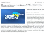 На официальном сайте партии "Партия Регионов" появилось сообщение о том, что партия осуждает действия и предательство Виктора Януковича.