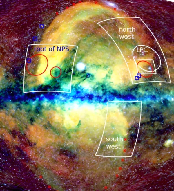 Пузыри eROSITA немного напоминает пузыри Ферми, структуры, расположенные также над и под галактическим диском. Но последние астрономы наблюдали с помощью выпускаемого пузырями Ферми гамма и рентгеновского излучения. Пузыри eROSITA выпускают более слабое рентгеновское излучение, то фотоны менее энергичны. Данную структуру разделяют на северный и южный пузырь. На двухмерной карте они выглядят как две отдельные структуры. Благодаря новым наблюдениям за центром галактики ученые пришли к выводу, что эти пузыри все же находятся именно там, а не ближе к Солнцу. Также авторы смогли подтвердить, что оба пузыря имеют размер примерно 32 тысячи световых лет. Также удалось определить границы пузырей и оказалось, то это не отдельные структуры, а единое целое. То есть один гигантский пузырь, напоминающий по форме песочные часы. Авторам удалось четко определить границы северного пузыря и оказалось, что его истоки находятся в галактическом центре. Именно отсюда исходят потоки энергии, формирующие пузырь. Границу южного пузыря не удалось определить так точно, но авторы считают, что он более вытянутый, чем северный пузырь. Также не ясно является ли южная часть структуры замкнутой, как северная. | |