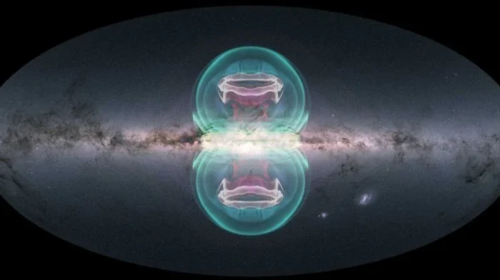 Четыре года назад с помощью космического телескопа eROSITA астрономы обнаружили наличие огромной структуры в форме песочных часов в центре Млечного Пути. По сути это две структуры похожие на пузыри, которые возвышаются над центром нашей галактики сверху и снизу, если смотреть на Млечный Путь с ребра. Ученые смогли доказать, что эти пузыри действительно находятся там, где и предполагалось, хотя существовала и другая версия. При этом ученые смогли определить их размер, а также выяснить, что два пузыря eROSITA является единым целым. Результаты исследования опубликованы в журнале The Astrophysical Journal Letters, пишет Phys. Точная природа пузырей eROSITA до сих пор не определена. Одни ученые считают, что эти структуру созданы выбросами горячего газа, другие же настаивают на том, что они созданы выбросами энергии. Но оба пузыря рассматривают не как трехмерные, а как двухмерные структуры. Поэтому существовали предположения, что на самом деле они являются тенью неизвестного объекта. Авторы исследования решили проверить две самые популярные, но противоречивые гипотезы, которые касаются пузырей eROSITA: