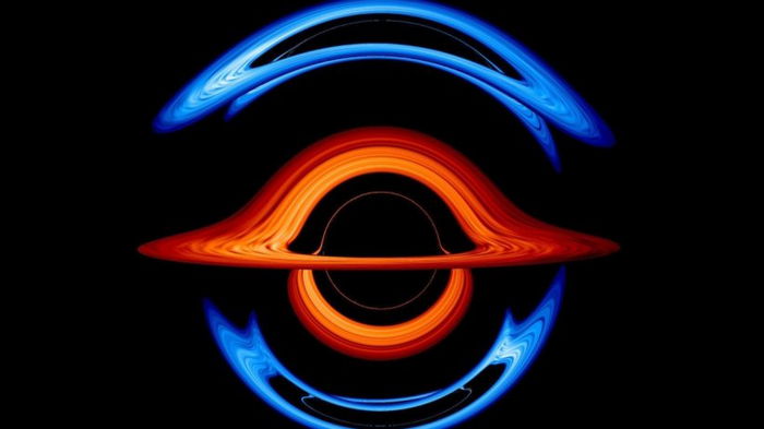 Пара черных дыр совершает гипнотический танец в новой визуализации NASA. В новом моделированни показано, как черные дыры искажают и перенаправляют свет, исходящий от водоворота горячего газа, называемого аккреционным диском, который окружает каждую из них, сообщает NASA. Если смотреть со стороны плоскости орбиты, каждый аккреционный диск приобретает характерный двугорбый вид. Но когда одна проходит впереди другой, гравитация черной дыры на переднем плане превращает ее партнера в быстро меняющуюся последовательность изгибов. Эти искажения проявляются, когда свет от обоих дисков перемещается по запутанной материи пространства и времени рядом с черными дырами.