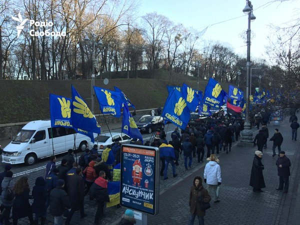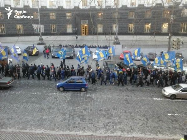 ![]() С Майдана началось шествие к Раде с требованием отставки премьера