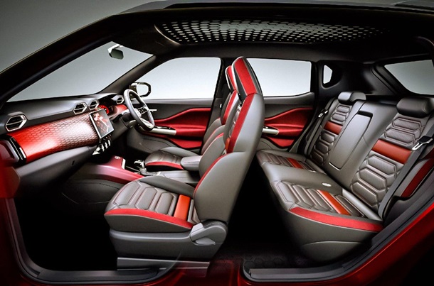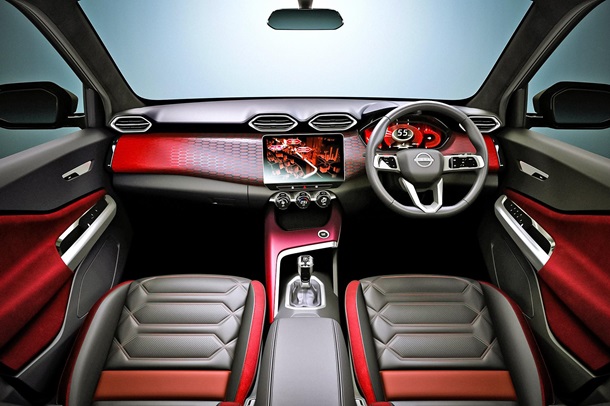 ![]() Фото: Nissan Новинка компании Magnite выйдет для индийского рынка. Салон авто выполнен в черном и бордовом цветах.
