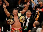 Утром 26 апреля в Нью-Йорке состоялся бой Владимир Кличко - Брайант Дженнингс.Кличко победил единогласным решением судей. Все три арбитра отдали победу ему: 116-111, 116-111, 118-109. Украинский чемпион нанес несколько сокрушительных ударов, но его соперник ни разу не упал. | |