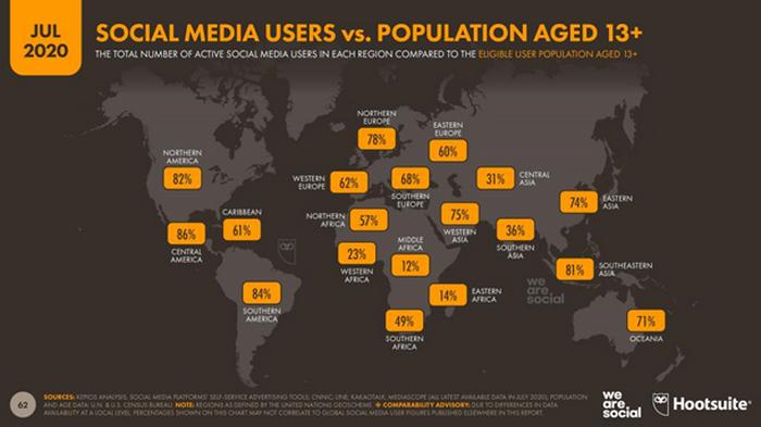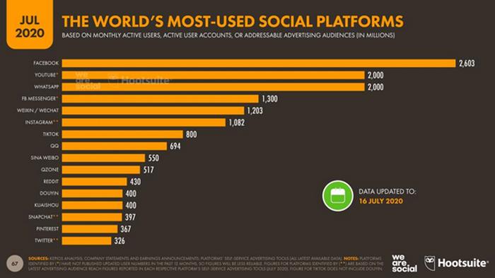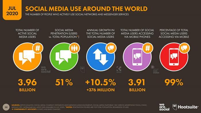 Всемирная аудитория социальных сетей преодолела отметку в половину населения Земли. Об этом говорится в отчете Digital 2020 компаний We Are Social и Hootsuite.По данным исследования на момент июля 2020 года глобальная аудитория соцсетей достигла 3,96 млрд человек, что составляет 51% всего населения планеты. При этом интернет-аудитория в мире выросла на 8,2%, а уникальных пользователей смартфонов стало больше на 2,4%. Среди жителей планеты в возрасте старше 13 лет аккаунты в соцсетях есть у 65%. Ежедневно их аудитория увеличивается на миллион пользователей, что составляет по 12 человек в секунду. На одного юзера в среднем приходится по 8,8 аккаунта на разных платформах. Ежедневно каждый пользователь проводит 2 часа 22 минуты. Также отмечается, что около 40% людей используют аккаунты в рабочих целях. Рейтинг самых популярных соцсетей возглавляет Facebook с 2,6 млрд пользователей в месяц. На втором месте оказались YouTube и WhatsApp с 2 млрд юзеров. Instagram превысил порог в миллиард пользователей, а и LinkedIn - в 700 миллионов. Twitter имеет 326 млн активных пользователей. При этом реальная аудитория YouTube и Twitter может быть значительно большей, за счет использования платформ незалогиненных пользователей. ![]() ![]() ![]()