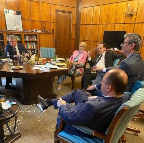 ![]() Фото: novosti.ua В сети появилось фото, как чиновник вместе с другими министрами сидят в кабинете со снятыми масками.