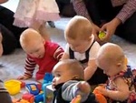 Принц Джордж, сын герцога и герцогини Кембриджских, впервые появился на публике в компании сверстников.