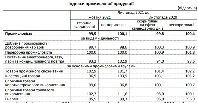 Объемы промышленного производства в ноябре 2021 года по сравнению с аналогичным месяцем прошлого года выросли на 0,4%. Таким образом, небольшой рост зафиксирован второй месяц подряд, пишет РБК-Украина.По данным Государственной службы статистики Украины (Госстат), за январь-ноябрь 2021 года рост промпроизводства составил 1,3% (в прошлом году за этот период падение на 5,4%). Таким образом, промпроизводство в Украине растет в четыре раза медленнее, чем падало в прошлом году. В добывающей промышленности и разработке карьеров рост составил 1,1%, в перерабатывающей промышленности - 1,5%, в поставках электроэнергии, газа, пара и кондиционированного воздуха - 0,9%. Напомним, промпроизводство в Украине начало падать еще осенью 2019 года. В итоге впервые с 2015 года за год объемы промышленного производства сократились на 0,5% - В кризисном 2020 году падение промпроизводства углубилось. Госстат оценивает падение на 4,5%. Самые высокие темпы падения были зафиксированы в апреле-мае. Промпроизводство падало и в начале 2021 года: в январе на 4,6%, в феврале - на 4,0%. Однако затем начался рост на фоне низкой базы сравнения - на 2,1% в марте, на 13,0% в апреле, на 5,4% в мае, на 1,1% в июне, на 0,2% в июле, в августе 0,6%. В сентябре 2021 года было зафиксировано падение на 0,7%, в октябре - рост на 1,4%. | |