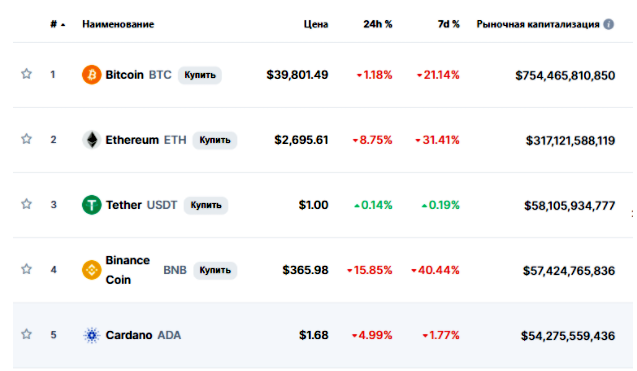 ![]() Фото: из открытых источников Две наиболее популярные критовалюты – Bitcoin и Ethereum – потеряли соответственно 22% и 28% стоимости в течение одного дня.