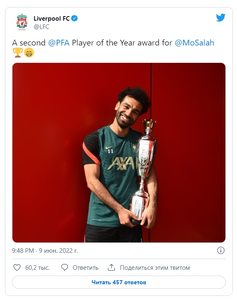 ![]() Фото: Getty Images Египетский нападающий Ливерпуля выиграл очередную индивидуальную престижную награду
