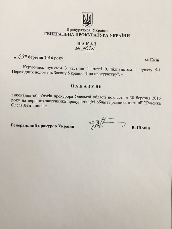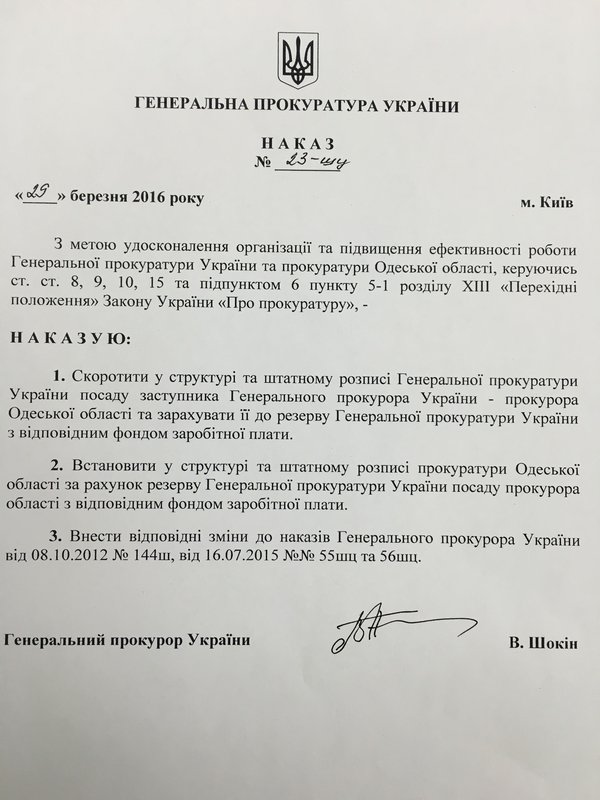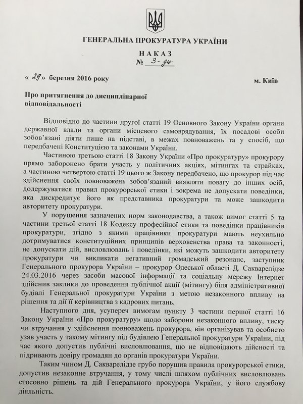 Шокин уволил Сакварелидзе (документ) | |