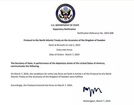 Швеция официально стала членом НАТО | |