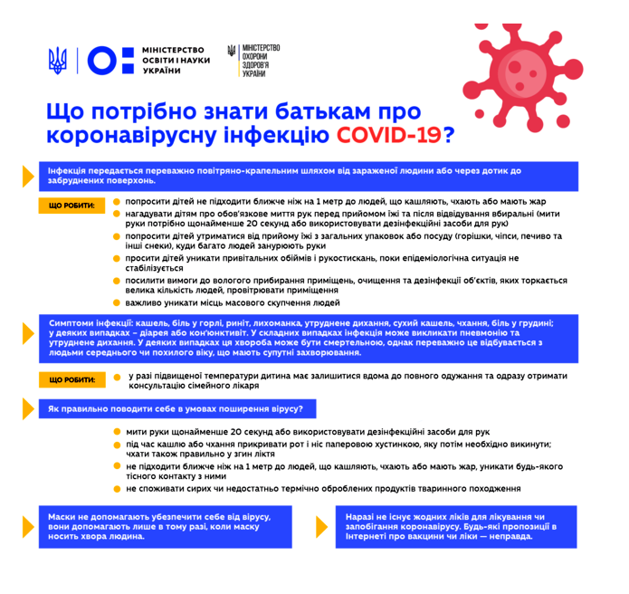 Коронавирус продолжает распространятся по всему миру. Минздрав напоминает родителям, что дети должны находиться дома, а не на детских площадках или в развлекательных центрах, передает Сегодня.Ребенок может заразиться коронавирусом. Но по статистике, среди всех заболевших деток всего 1%. Летальных случаев среди детей не зафиксировано. Китайские врачи проанализировали течение болезни среди малышей. Выявили, что ни у одного ребенка не было зафиксировано тяжелой вирусной пневмонии. Дети не нуждались в респираторной поддержке или интенсивной терапии. У некоторых деток коронавирус прошел в легкой форме, а у 1 ребенка из 10 вообще не было никаких симптомов. Симптомы коронавирусной инфекции схожи с симптомами ОРВИ и гриппа. Поэтому при подъеме температуры обязательно оставайтесь дома и свяжитесь с семейным врачом. Минздрав создал памятку для родителей, как наблюдать за детками в период карантина. ![]()