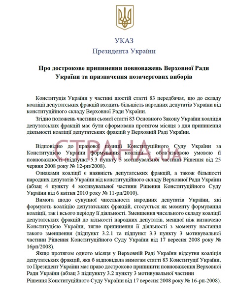 СМИ обнародовали проект указа о роспуске Рады | |