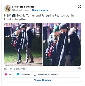 Софи Тернер подтвердила свой роман с аристократом Перегрином Пирсоном | |