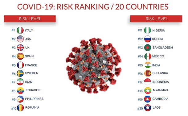 ![]() Фото: EPA/UPG Рейтинг составили в Deep Knowledge Group. Также консорциум составил топ-20 стран, где самые высокие риски из-за коронавируса.
