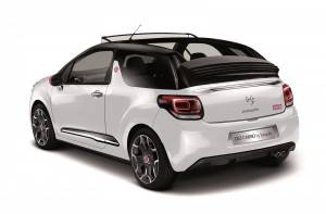 Кузов Citroen DS3 Cabrio предлагают для покупателей исключительно в белом варианте и с черной окраской крыши, а экстерьер авто получил некоторые особые значки.