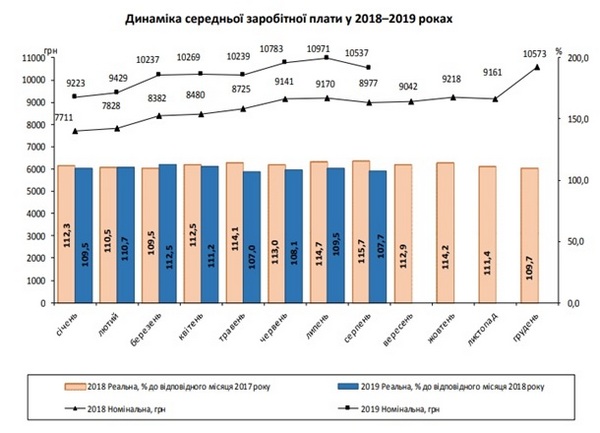 В августе 2019 года средняя номинальная зарплата штатного работника предприятий, учреждений и организаций Украины составила 10537 грн, что на 434 грн меньше, чем в июле (10971 грн). Об этом сообщает Госслужба статистики в пятницу, 27 сентября.Относительно августа прошлого года средняя зарплата выросла на 17,4%. Реальная зарплата (с учетом инфляции) в августе 2019 года к августу прошлого года выросла на 7,7%. Самая высокая начисленная зарплата в августе была в Киеве - 15694 грн, самая низкая - в Черновицкой области - 8017 грн. В большинстве областей размер зарплаты находится в пределах от 8000 до 9000 грн. ![]() Напомним, что в проекте бюджета на 2020 год минимальная зарплата на 550 грн выше. Кабмин в проекте Госбюджета на 2020 год предложил поднять минимальную зарплату до 4723 гривен. | |