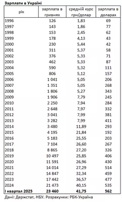 Зарплаты украинцев растут высокими темпами как в гривневом, так и в долларовом эквиваленте. Об этом сообщает РБК-Украина со ссылкой на Государственную службу статистики (Госстат). По данным статистического ведомства, средняя зарплата штатных работников в Украине в первом квартале 2025 года по сравнению с аналогичным периодом прошлого года выросла на 24,1% до 23 460 гривен. В долларовом эквиваленте зарплата выросла до 562 долларов. Она выше уровня: в 2021 году зарплата составляла 514 долларов. Зарплаты в УкраинеПо данным НБУ, нехватка работников поддерживает рост номинальных зарплат, однако высокая инфляция обуславливает более медленное повышение реальных зарплат. Инфляция уже достигла 15%, однако во второй половине она снизится. НБУ ожидает, что в 2025 году рост номинальной зарплаты составит 17,7%, реальной (с учетом инфляции) - 3,9%. В 2026 году номинальная зарплата вырастет на 9,4%, реальная - на 3,3%. В 2027 году номинальная зарплата вырастет на 8,8%, реальная - на 3,5%. Курс доллара снижался с начала 2025 года. Сейчас он на 50 копеек ниже, чем в конце прошлого года. В мае курс вырос по сравнению с февралем 2022 года на 45,8%. Инфляция за этот период составила около 60%. | |
