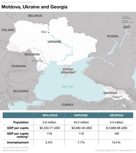 Итоги референдума о выходе Великобритании из Евросоюза пугают в наибольшей степени три страны - Украину, Грузию и Молдову, считают эксперты американского частного аналитическо-разведывательного агентства Stratfor.Киев, Тбилиси и Кишинев на протяжении долгого времени пытались влиться в ряды ЕС, но ни у одной из стран не получилось стать хотя бы кандидатом на вступление. Brexit, отмечают аналитики, уменьшил и без того призрачные шансы во много раз.