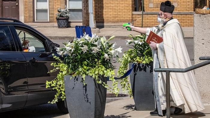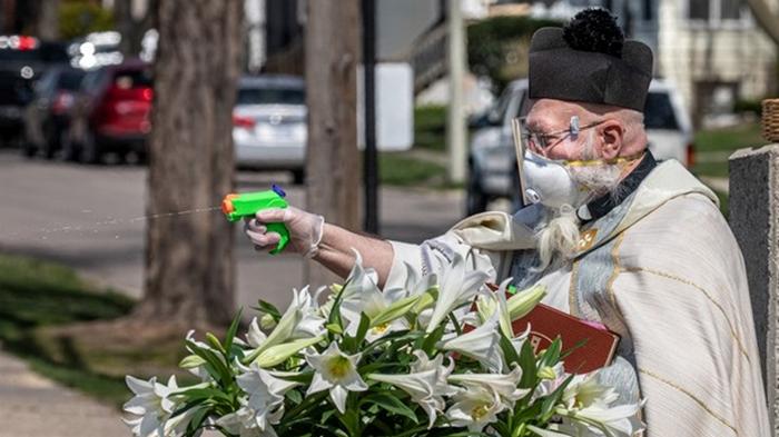 Священник Тим Пелк из американского города Детройт использовал водяной пистолет, наполненный святой водой, чтобы благословлять прихожан и освящать их продукты на Пасху. Делал он это для того, чтобы соблюдать социальную дистанцию во время вспышки коронавирсной инфекции, пишет The Guardian.70-летний священник из церкви Святого Амвросия рассказал, что сначала посоветовался с одним из своих друзей, врачом отделения неотложной помощи, чтобы удостовериться, что его план безопасен для него самого и прихожан. Как отметил святой отец, это оказалось не только безопасно, но и весело. Смекалку Пелка оценили не только прихожане, но и интернет-пользователи после того, как фото необычного освящения пасхальных корзин появились в сети. ![]() ![]()