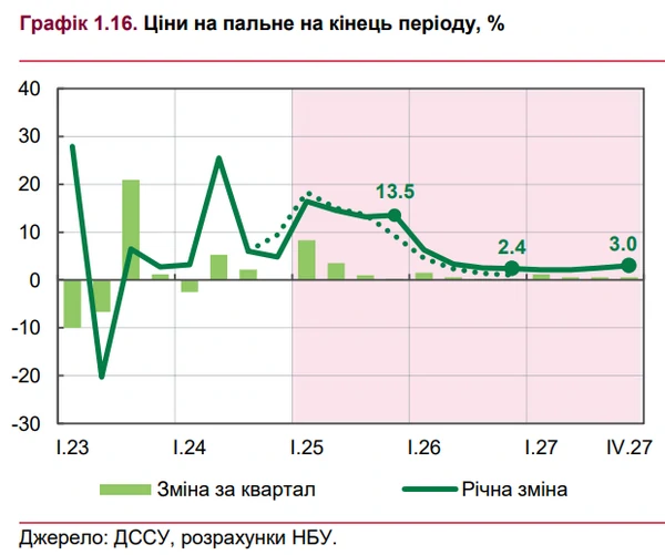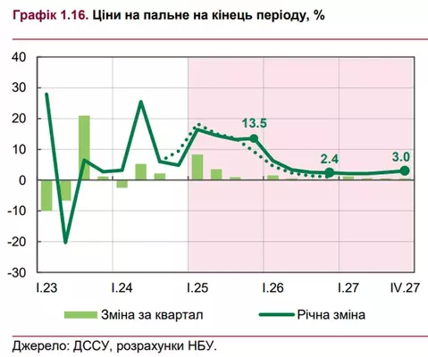 Кроме стоимости сырья и динамики обменного курса, на цены на топливо имели влияние и изменения в налоговом законодательстве и маркетинговые методы борьбы за клиента. В конце года активизировался и импорт топлива с целью накопления достаточных запасов перед очередным этапом повышения акцизов с начала 2025 года, что несколько сдержит рост цен на топливо в ближайшие месяцы, однако этот эффект будет краткосрочным, прогнозируют в НБУ. "По мере исчерпания запасов под влиянием утвержденного повышения акцизов темпы роста цен на топливо ускорятся до более 13% в текущем году", - говорится в обзоре. Из-за влияния на себестоимость это дополнительно будет давить на стоимость отдельных товаров и транспортных услуг. В то же время в среднесрочной перспективе снижение мировых цен на нефть частично компенсирует дальнейший рост акцизной нагрузки. В результате рост цен на топливо значительно замедлится, прогнозируют в НБУ. | |
