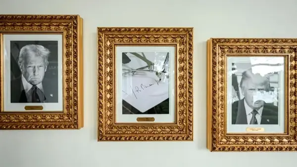 Лидер США Дональд Трамп заменил портрет экс-президента Джо Байдена на аллее славы в западном крыле Белого дома на фото устройства, которое автоматически ставит подпись Байдена. Соответствующее видео опубликовала помощница Трампа и советница по вопросам коммуникаций Марго Мартин в социальной сети X. В коридоре вдоль колоннады западного крыла выставлены золотые рамки с портретами американских президентов. Однако вместо официального изображения 46-го президента Джо Байдена на стене висит снимок устройства, которое автоматически ставит подпись бывшего лидера США. Напомним, в июне Трамп поручил провести расследование по использованию автоподписи Байденом для подписания официальных документов, ставя под сомнение его когнитивное состояние во время пребывания на посту. Автоподпись использовалась для подписания более 1200 президентских документов, включая указы, помилования и назначения судей. | |