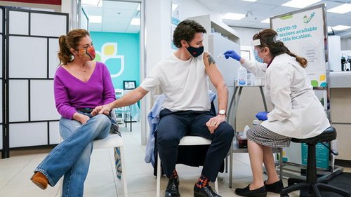 ![]() Фото: twitter.com/JustinTrudeau Джастин и Софи Трюдо привились вакциной компании AstraZeneca. Премьер поблагодарил медиков, которые вакцинируют население.