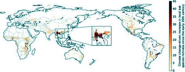 Глобальное потепление в Южном Китае вызвало изменения природной среды, что стало причиной резкого увеличения видового разнообразия летучих мышей - первичного резервуара для возникновения нового коронавируса SARS-CoV-2. Об этом говорится в исследовании ученых из Великобритании, Германии и США, которые были опубликованы в журнале Science of the Total Environment.Глобальные климатические изменения - повышение температуры, увеличение количества солнечного света и углекислого газа в атмосфере - изменили состав растительности и естественную среду обитания животных во многих регионах мира. Масштабное экологическое исследование, проведенное на юге Китая и в прилегающих областях Мьянмы и Лаоса, выявило существенное изменение типа растительности в этих районах за последнее столетие. Это создало благоприятную среду для проживания летучих мышей. Известно, что число новых вирусов, зарождающихся в популяции летучих мышей, напрямую зависит от числа локальных видов этих животных. Согласно подсчетам ученых, только в одной провинции Юньнань начиная с начала ХХ века появилось 40 новых видов летучих мышей, потенциально принесших с собой около 100 типов коронавирусов. Из-за потепления и связанного с ним бурного роста тропических лесов этот регион, по словам исследователей, стал "глобальной горячей точкой" зарождения новых зоонозных патогенов. В мировой популяции летучих мышей, по оценкам ученых, сегодня находится около 3000 типов коронавируса. Каждый вид этих животных переносит в среднем 2,7 коронавируса. Большинство коронавирусов, переносимых летучими мышами, не передаются человеку. Но увеличение количества видов летучих мышей в конкретном регионе повышает вероятность того, что там зародится опасный для человека патоген. Исследование показало, что за последнее столетие изменения климата также привели к увеличению количества видов летучих мышей в регионах Центральной Африки и отдельных частях Центральной и Южной Америки. | |