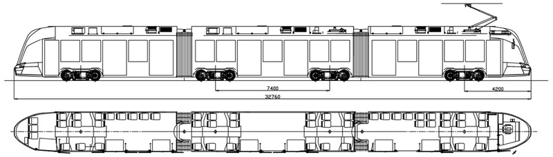 ![]() Фото: Татра-Юг Длина вагона может быть продлена путем добавления секций – в целом до 5 секций.