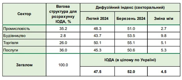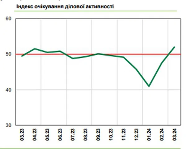 В марте 2024 года украинский бизнес положительно оценил текущие результаты своей деятельности после пяти месяцев негативных ожиданий. Индекс ожиданий деловой активности (ИОДА) вырос с 47,5 до 52,0 пункта, превысив нейтральный уровень (50 пунктов). Об этом сообщает РБК-Украина со ссылкой на данные опроса НБУ.