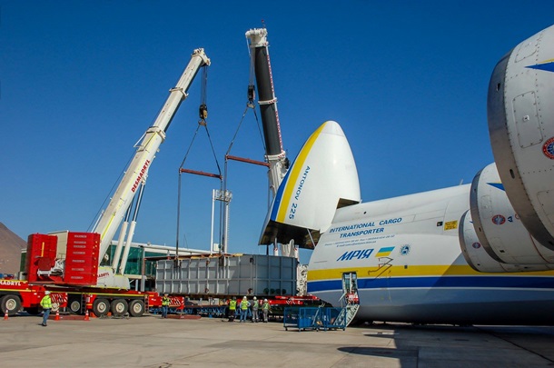 ![]() facebook.com/antonov.company Украинская Мрия совершила 12 рейсов из Чили в Боливию, перевозя двенадцать тепловых парогенераторов (HRSG) весом 160 тонн каждый.
