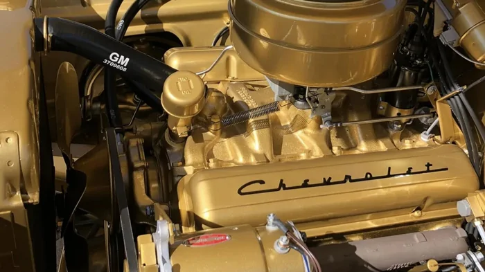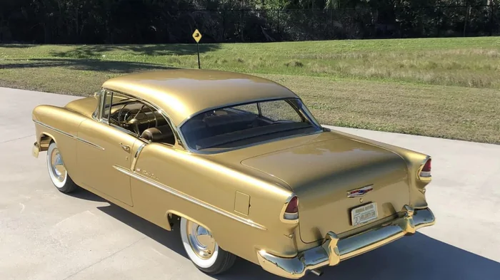 ![]() Фото: Mecum Кузов, салон, двигатель и шасси Chevrolet Bel Air окрашены в золотистый цвет.