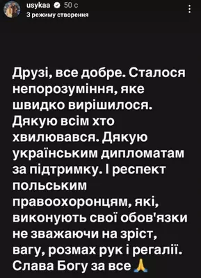 Украинский боксер Александр Усик впервые прокомментировал задержание в краковском аэропорту. Это он сделал в среду, 18 сентября, в сторис в Instagram. Он поблагодарил всех, кто волновался. "Друзья, все хорошо. Случилось недоразумение, которое быстро решилось. Спасибо всем, кто волновался. Спасибо украинским дипломатам за поддержку. И респект польским правоохранителям, выполняющим свои обязанности, несмотря на рост, вес, размах рук и регалии", - говорится в сообщении. Напомним, 17 сентября вечером стало известно о задержании украинского боксера Александра Усика в Польше в аэропорту Кракова. Спортсмен и народный депутат Жан Беленюк обнародовал в своем Telegram соответствующую информацию. Позже президент Украины сообщил, что Александра Усика отпустили. | |