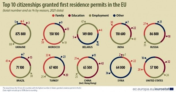 В 2021 году больше всего видов на жительство в ЕС получили украинцы | |