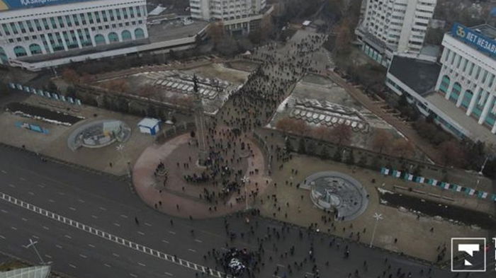 Протестующие захватили старую резиденцию президента Казахстана в Алматы, сообщает портал zakon.kz в среду, 5 января, со ссылкой на очевидцев.Ранее сообщалось, что несколько тысяч протестующих пытаются прорваться на территорию резиденции. Также в городе подожгли здание филиала правящей партии Нур Отан (Свет Отечества). По данным полиции Алматы, в ходе протестов в городе сожжено 120 машин (в том числе 33 полицейских), подожгли здание акимата и полиции, разбито 120 магазинов и объектов торговли, 180 предприятий общепита и около 100 офисов, пострадали более 500 человек. Ранее протестующие захватили здание администрации Алматы. Штурмы админзданий происходят и в других городах, в частности в Актобе. Протесты продолжаются, несмотря на отправку правительства в отставку и снижения цен на газ. | |