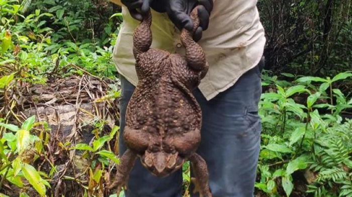 В Квинсленде в Австралии обнаружили гигантскую тростниковую лягушку весом в 2,7 килограмма. Она считается самой крупной в мире. Об этом сообщает телеканал ABC.