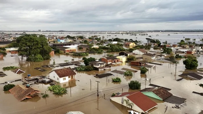 ![]() Фото: Carlos Fabal, AFP Река Гуайба, протекающая через город Порту-Аллегри с населением 1,4 миллиона, достигла рекордно высокого уровня в 5,3 метра.