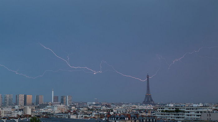 ![]() Фото: twitter.com/ptrenard Молнии попадают в Эйфелеву башню в среднем четыре раза в год, несмотря на высоту сооружения.