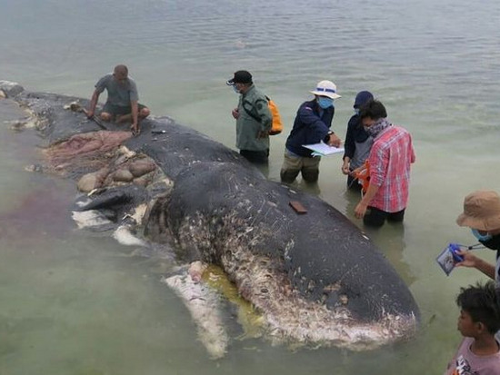 В Индонезии из желудка мертвого кашалота извлекли почти 6 кг пластика | |