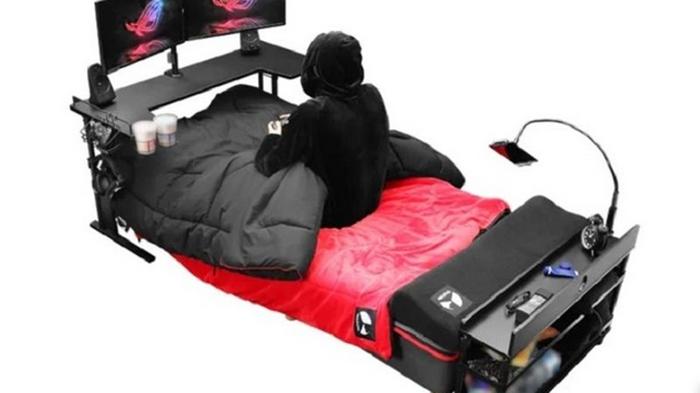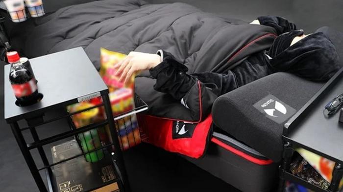 В Японии представили кровать, разработанную специально для геймеров. Устройство выпустила компания Bauhütte, специализирующаяся на изготовлении игровых столов и кресел, пишет 9GAG.Геймерская кровать оснащена спальным матрасом, одеялом, который можно превратить в удобное кресло-пуфик, подушкой. Также к спальному месту можно добавить специальные полки для закусок и напитков, подставки под устройства и даже пижаму с шапкой. Этот предмет мебели в полной комплектации обойдется покупателю более чем в тысячу долларов. ![]() ![]() ![]()