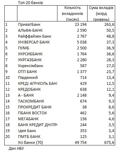![]() Фото: Facebook Большинство вкладов было в гривне: 42,8 млн вкладов на 422,8 млрд гривен. В валюте было 6,99 млн вкладов на сумму 252,8 млрд гривен.