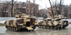 Конструкторы Харьковского бронетанкового ремонтного завода сконструировали усовершенствованную версию боевой машины пехоты БМПТ-64, передают Подробности.В отличие от БМП-2, с броней до 23 мм, БМПТ-64 защищена танковой броней до 350 мм. Это позволяет уверено держать огонь из легких противотанковых гранатометов, а в случае использования навесной динамической защиты - и огонь противотанковых комплексов. Вооружение БМП состоит из 30-милиметровой автоматической пушки и противотанковых управляемых ракет. БМПТ-64 создан на базе танка Т-64 и совместим с ним двигателем, ходовой частью и электрооборудованием, что позволяет значительно экономить средства при выпуске и ремонте новой БМП. Конструкция машины позволяет проводить установку любого боевого модуля для отечественной бронетехники, включая модули "Парус", который используется на БТР-4. Внутри машины размещается десант из 12 бойцов. Конструкторы учли опыт использования подобных машин, разместив выход для десанта с кормы, что позволяет выходить бойцам с защищенной от огня противника стороны. Благодаря мощной броне, машина может доставить десант и оказать ему поддержку огнем даже на переднем крае боя. Как говорят сами конструкторы, их машина успешно заменит устаревшую БМП-2. | |