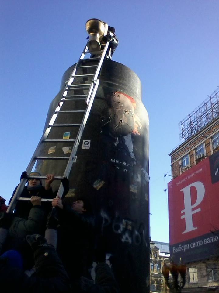 Участники Евромайдана в Киеве установили позолоченный покраской унитаз, на постамент в Киеве, откуда ранее сбросили памятник Ленина. Об этом сообщили на Вести.ua. Активисты акции рассказали, что данная скульптура есть символом "неоправданной роскоши и коррупции, а также действующего преступного режима".