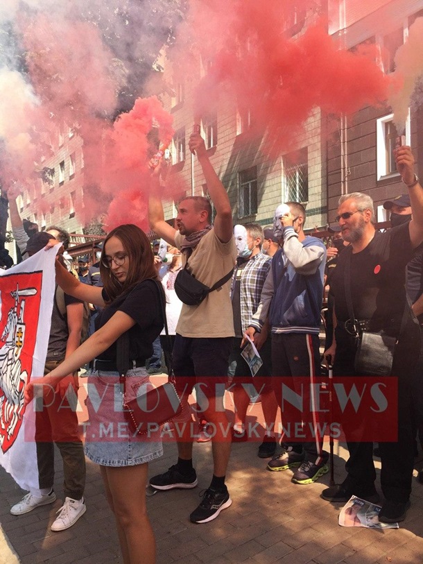 В Киеве у посольства Беларуси зажгли бело-красные файеры (фото) | |
