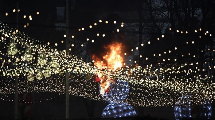 ![]() Фото: РБК-Украина Обслуживающий персонал ликвидировал возгорание гирлянды с помощью порошкового огнетушителя.