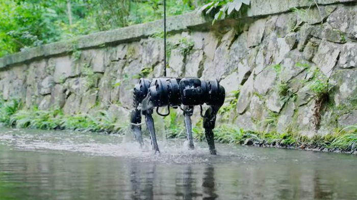 Китайская компания Unitree Robotics представила четвероногого робота-собаку Unitree B1, который умеет ходить под водой. Робот, защищенный от воды по классу IP68, почти полностью перемещается под водой – над поверхностью находится только его антенна. Устройство может переносить грузы массой до 80 килограммов, кое-где и больше. В видео робот носит на себе человека весом более 100 кг. Unitree B1 ходит со скоростью до 1,8 метра в секунду. Заряда его батареи хватает на 2-4 часа работы. Робот также умеет ходить по лестнице и пересеченной местности. | |