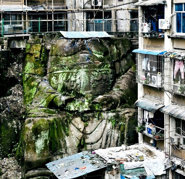 В китайском городе Чунцин на юго-западе Китая между двумя многоэтажными домами нашли гигантского Будду – у него не было головы, а сама статуя служила поддержкой для строительных лесов и одного из домов, сообщает South China Morning Post.Высота статуи составляет девять метров. При этом, по утверждению многих жителей близлежащих домов, они никогда не видели ее и даже не подозревали о ее существовании. Обнаруженный Будда был полностью покрыт растениями, а вместо головы на нем стояли строительные леса. Кроме того, он сам частично поддерживал одну из многоэтажек, составляя одно целое с ее основанием. Возраст статуи пока точно не определен, но уже сейчас она требует к себе повышенного внимания, говорят ученые. Ее основание начало подмывать грунтовыми водами, что может привести к катастрофе – Будда может рухнуть. | |