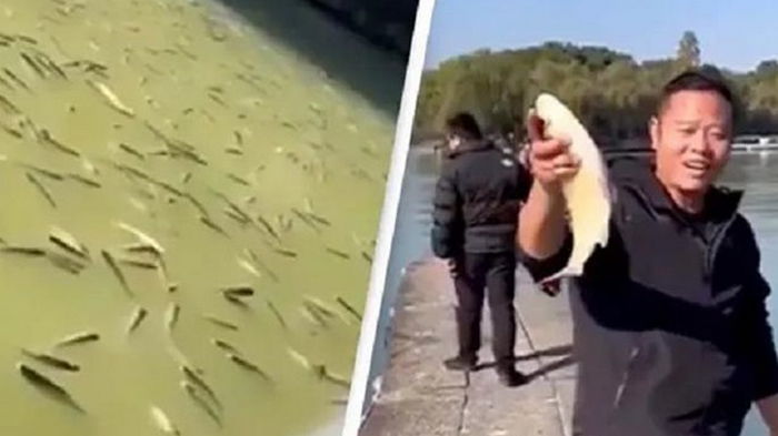 В Китае тысячи пьяных рыб всплыли в озере (видео) | |