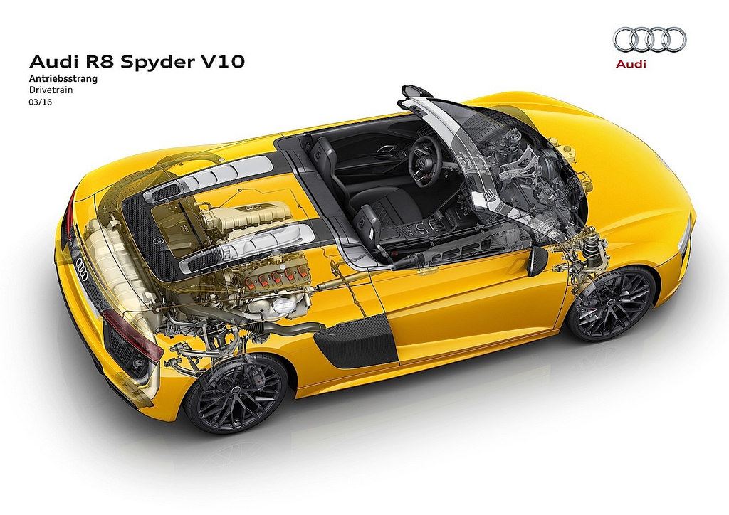 ![]() © Audi R8 Spyder Производитель заявляет максимальную скорость своего самого крутого кабриолета на уровне 318 км/ч